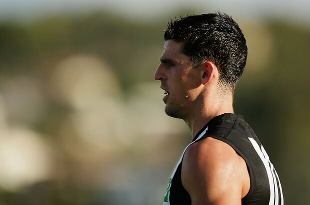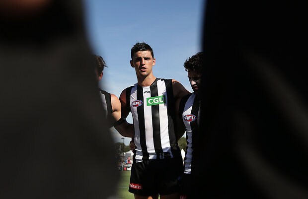WAGGA WAGGA, AUSTRALIA - MARCH 05: Scott Pendlebury of the Magpies looks on during the 2016 AFL NAB Challenge match between the North Melbourne Kangaroos and the Collingwood Magpies at Robertson Oval on March 5, 2016 in Wagga Wagga, Australia. (Photo by Mark Metcalf/Getty Images/AFL Media)