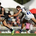 WAGGA WAGGA, AUSTRALIA - MARCH 05: Robbie Tarrant of the Kangaroos kicks the ball during the 2016 AFL NAB Challenge match between the North Melbourne Kangaroos and the Collingwood Magpies at Robertson Oval on March 5, 2016 in Wagga Wagga, Australia. (Photo by Mark Metcalf/Getty Images/AFL Media)