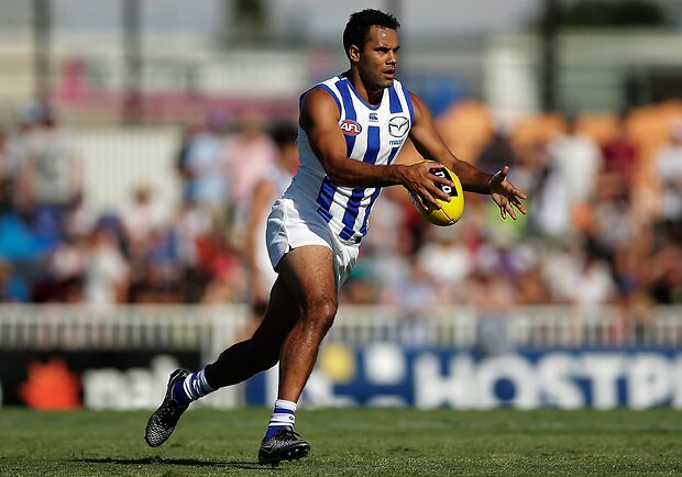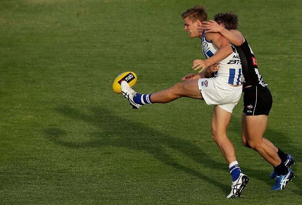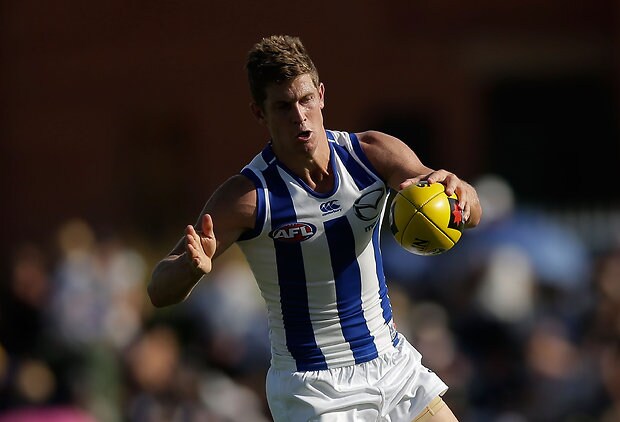 WAGGA WAGGA, AUSTRALIA - MARCH 05: Daniel Wells of the Kangaroos in action during the 2016 AFL NAB Challenge match between the North Melbourne Kangaroos and the Collingwood Magpies at Robertson Oval on March 5, 2016 in Wagga Wagga, Australia. (Photo by Mark Metcalf/Getty Images/AFL Media)