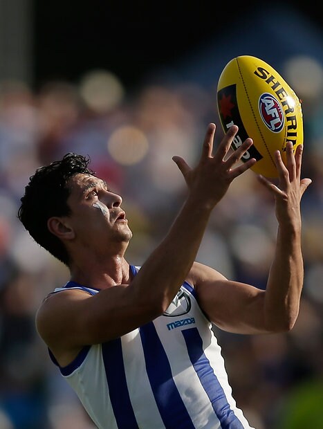 WAGGA WAGGA, AUSTRALIA - MARCH 05: Robin Nahas of the Kangaroos catches the ball during the 2016 AFL NAB Challenge match between the North Melbourne Kangaroos and the Collingwood Magpies at Robertson Oval on March 5, 2016 in Wagga Wagga, Australia. (Photo by Mark Metcalf/Getty Images/AFL Media)
