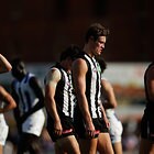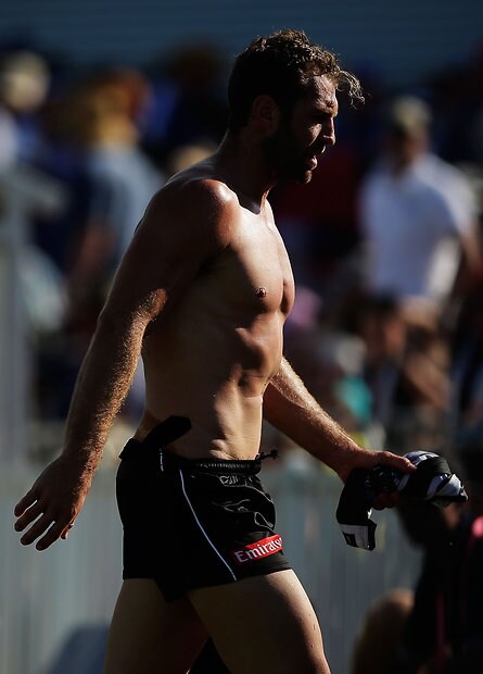WAGGA WAGGA, AUSTRALIA - MARCH 05: Travis Cloke of the Magpies walks from the field at half time during the 2016 AFL NAB Challenge match between the North Melbourne Kangaroos and the Collingwood Magpies at Robertson Oval on March 5, 2016 in Wagga Wagga, Australia. (Photo by Mark Metcalf/Getty Images/AFL Media)