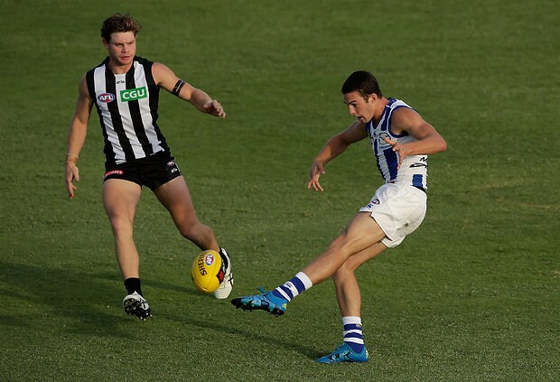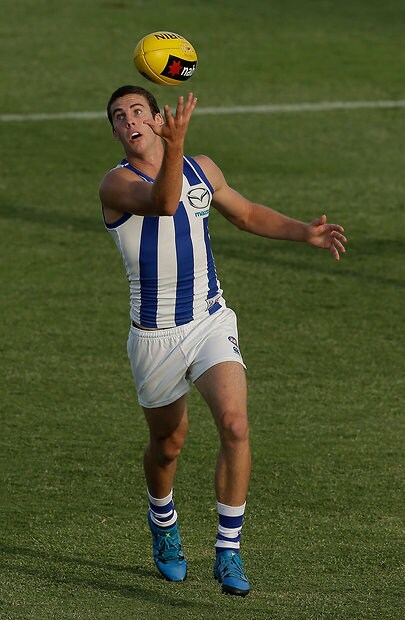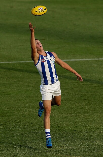 WAGGA WAGGA, AUSTRALIA - MARCH 05: Max Warren of the Kangaroos in action during the 2016 AFL NAB Challenge match between the North Melbourne Kangaroos and the Collingwood Magpies at Robertson Oval on March 5, 2016 in Wagga Wagga, Australia. (Photo by Mark Metcalf/Getty Images/AFL Media)