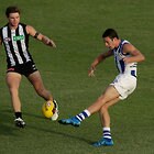 WAGGA WAGGA, AUSTRALIA - MARCH 05: Nick Dal Santo of the Kangaroos kicks during the 2016 AFL NAB Challenge match between the North Melbourne Kangaroos and the Collingwood Magpies at Robertson Oval on March 5, 2016 in Wagga Wagga, Australia. (Photo by Mark Metcalf/Getty Images/AFL Media)