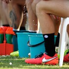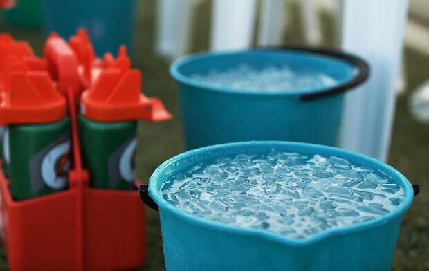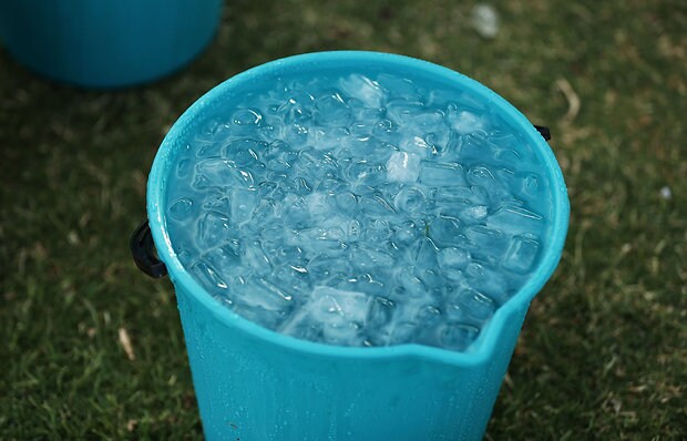 WAGGA WAGGA, AUSTRALIA - MARCH 05: Ice buckets are seen by the team beaches as temperatures soar during the 2016 AFL NAB Challenge match between the North Melbourne Kangaroos and the Collingwood Magpies at Robertson Oval on March 5, 2016 in Wagga Wagga, Australia. (Photo by Mark Metcalf/Getty Images/AFL Media)