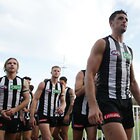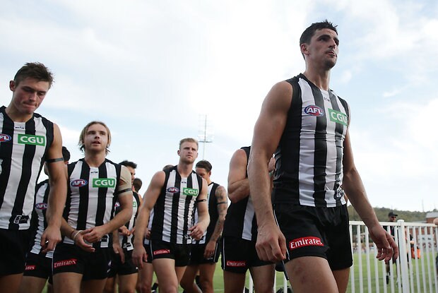 WAGGA WAGGA, AUSTRALIA - MARCH 05: Magpies players walk from the field at half time during the 2016 AFL NAB Challenge match between the North Melbourne Kangaroos and the Collingwood Magpies at Robertson Oval on March 5, 2016 in Wagga Wagga, Australia. (Photo by Mark Metcalf/Getty Images/AFL Media)