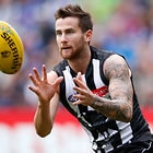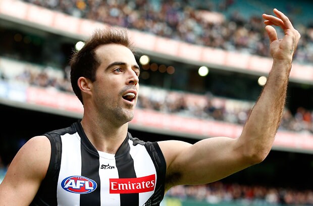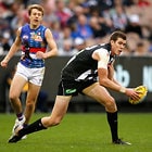 MELBOURNE, AUSTRALIA - MAY 29: Steele Sidebottom of the Magpies looks on during the 2016 AFL Round 10 match between the Collingwood Magpies and the Western Bulldogs at the Melbourne Cricket Ground on May 29, 2016 in Melbourne, Australia. (Photo by Adam Trafford/AFL Media)