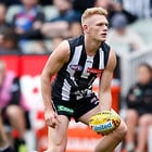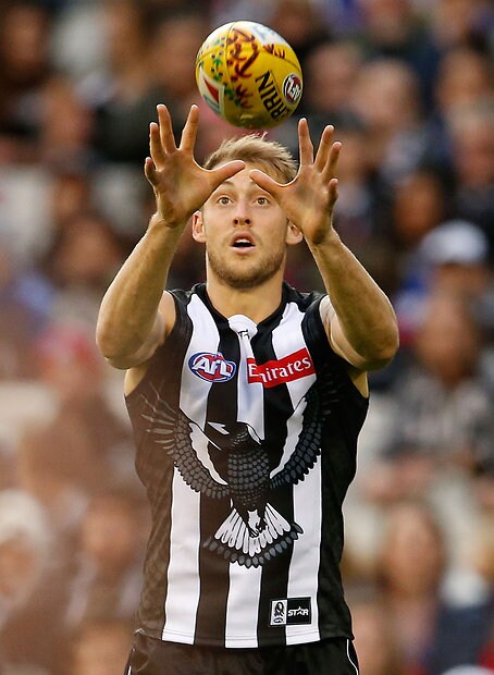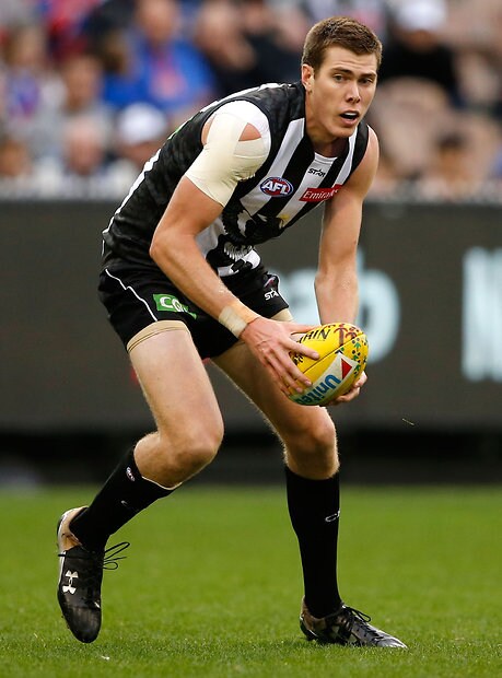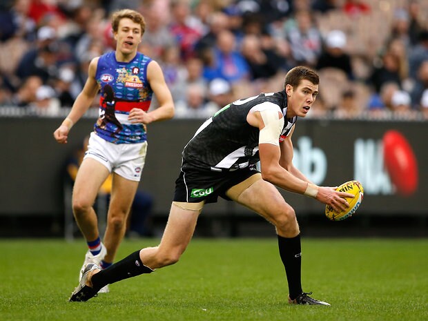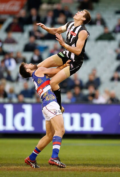 MELBOURNE, AUSTRALIA - MAY 29: Mason Cox of the Magpies in action during the 2016 AFL Round 10 match between the Collingwood Magpies and the Western Bulldogs at the Melbourne Cricket Ground on May 29, 2016 in Melbourne, Australia. (Photo by Adam Trafford/AFL Media)