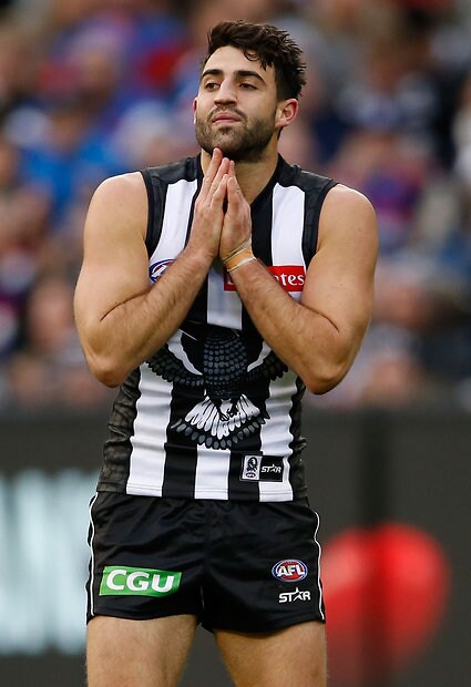 MELBOURNE, AUSTRALIA - MAY 29: Alex Fasolo of the Magpies rues a missed shot on goal during the 2016 AFL Round 10 match between the Collingwood Magpies and the Western Bulldogs at the Melbourne Cricket Ground on May 29, 2016 in Melbourne, Australia. (Photo by Adam Trafford/AFL Media)