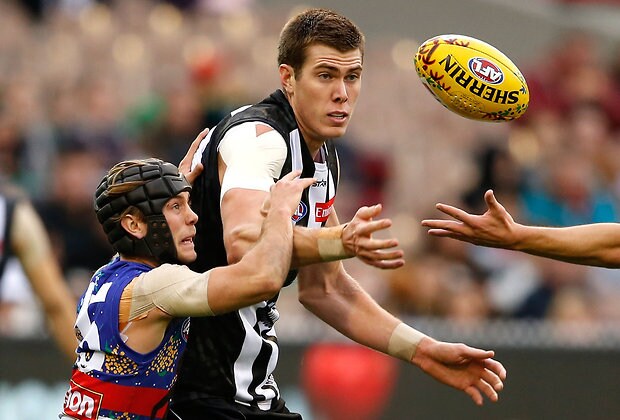 MELBOURNE, AUSTRALIA - MAY 29: Jeremy Howe of the Magpies in action during the 2016 AFL Round 10 match between the Collingwood Magpies and the Western Bulldogs at the Melbourne Cricket Ground on May 29, 2016 in Melbourne, Australia. (Photo by Adam Trafford/AFL Media)