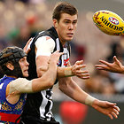 MELBOURNE, AUSTRALIA - MAY 29: Jeremy Howe of the Magpies marks the ball during the 2016 AFL Round 10 match between the Collingwood Magpies and the Western Bulldogs at the Melbourne Cricket Ground on May 29, 2016 in Melbourne, Australia. (Photo by Adam Trafford/AFL Media)