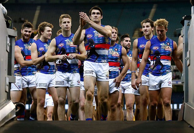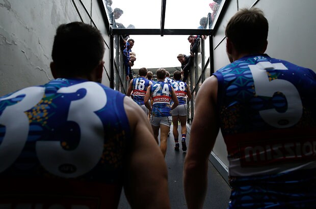 MELBOURNE, AUSTRALIA - MAY 29: Bulldogs players come up the race during the 2016 AFL Round 10 match between the Collingwood Magpies and the Western Bulldogs at the Melbourne Cricket Ground on May 29, 2016 in Melbourne, Australia. (Photo by Adam Trafford/AFL Media)
