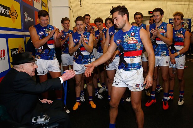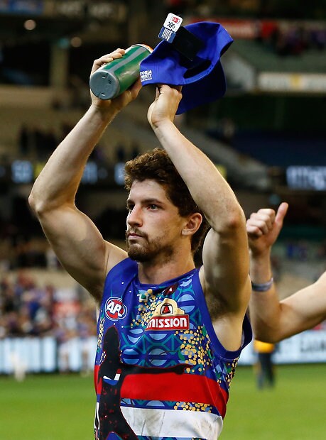 MELBOURNE, AUSTRALIA - MAY 29: Tom Liberatore of the Bulldogs thanks fans during the 2016 AFL Round 10 match between the Collingwood Magpies and the Western Bulldogs at the Melbourne Cricket Ground on May 29, 2016 in Melbourne, Australia. (Photo by Adam Trafford/AFL Media)