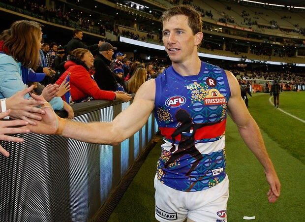 MELBOURNE, AUSTRALIA - MAY 29: Dale Morris of the Bulldogs thanks fans during the 2016 AFL Round 10 match between the Collingwood Magpies and the Western Bulldogs at the Melbourne Cricket Ground on May 29, 2016 in Melbourne, Australia. (Photo by Adam Trafford/AFL Media)