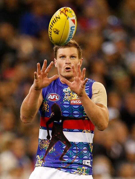MELBOURNE, AUSTRALIA - MAY 29: Marcus Bontempelli of the Bulldogs in action during the 2016 AFL Round 10 match between the Collingwood Magpies and the Western Bulldogs at the Melbourne Cricket Ground on May 29, 2016 in Melbourne, Australia. (Photo by Adam Trafford/AFL Media)