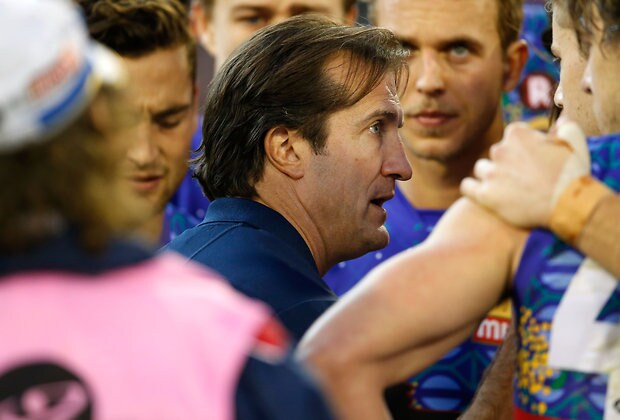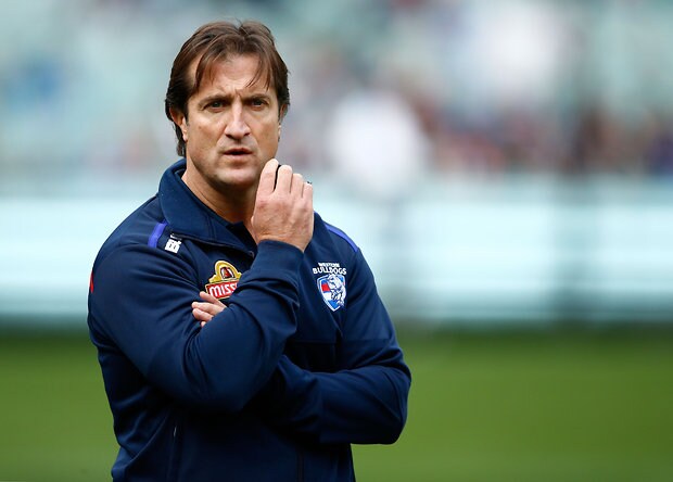 MELBOURNE, AUSTRALIA - MAY 29: Luke Beveridge, Senior Coach of the Bulldogs addresses his players during the 2016 AFL Round 10 match between the Collingwood Magpies and the Western Bulldogs at the Melbourne Cricket Ground on May 29, 2016 in Melbourne, Australia. (Photo by Adam Trafford/AFL Media)