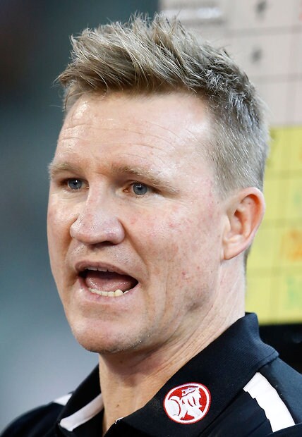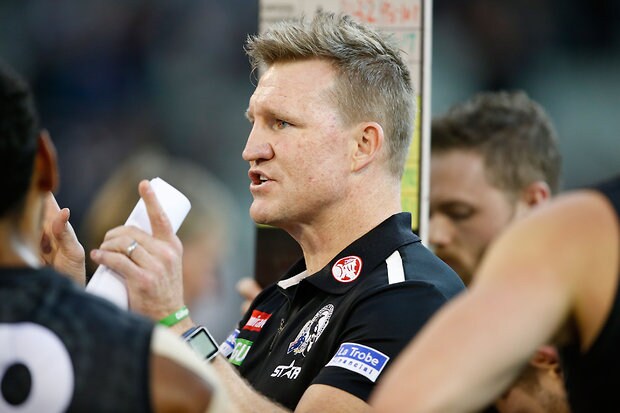 MELBOURNE, AUSTRALIA - MAY 29: Nathan Buckley, Senior Coach of the Magpies addresses his players during the 2016 AFL Round 10 match between the Collingwood Magpies and the Western Bulldogs at the Melbourne Cricket Ground on May 29, 2016 in Melbourne, Australia. (Photo by Adam Trafford/AFL Media)