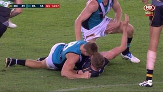 Richmond lead the hitout count 2216, but Port Adelaide lead 5-4 in hitouts to advantage