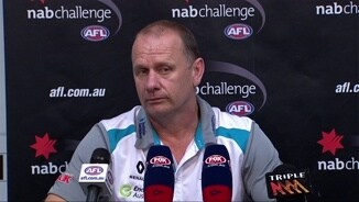 Port Adelaide: Port fans had to wait until the third quarter to see boom recruit Charlie Dixon introduced into the game, as the club continues to closely manage his pre-season load ahead of round one. The ex-Gold Coast forward took a strong mark within two minutes of coming on the field, which set up a goal for teammate Jay Schulz. Former Melbourne midfielder Jimmy Toumpas moved through the wing and was polished at stages but didn't have much of it, finishing with 11 touches at 90 per cent efficiency.