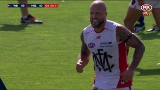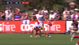 Bernie Vince wins an intercept possession in the defensive midfield and launches the Demons first goal from intercepts.
