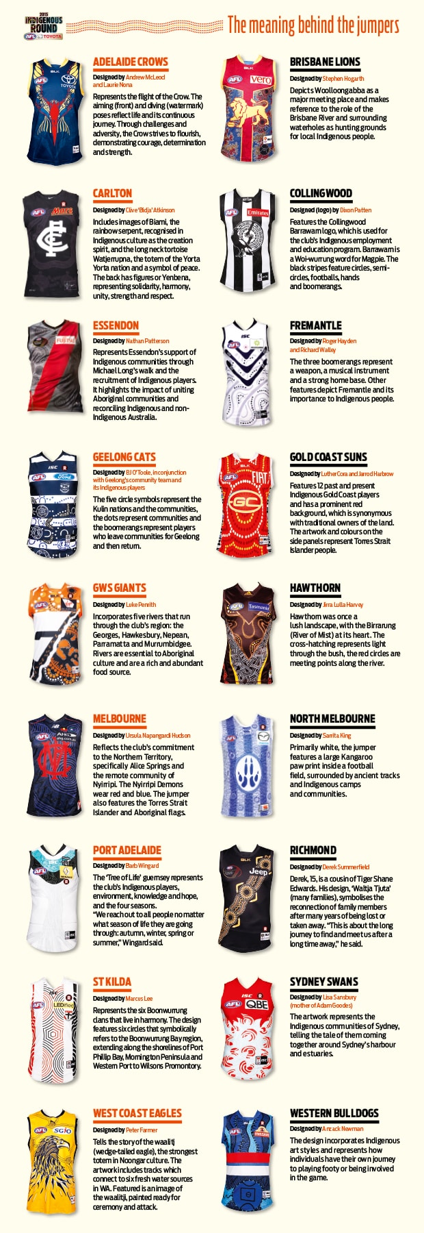Below: check out the jumpers each team will be wearing this weekend as part of Indigenous Round
