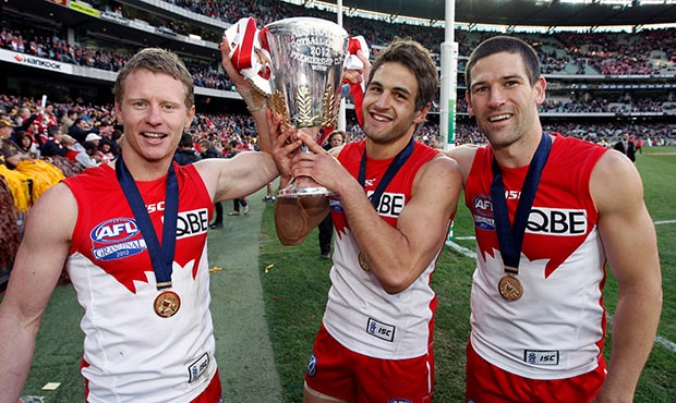 Josh Kennedy (centre) played a vital role in helping the Swans to the 2012 flag. Picture: AFL Photos