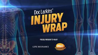 Noah Long is assisted off following an awkward tackle that leaves him clutching his leg