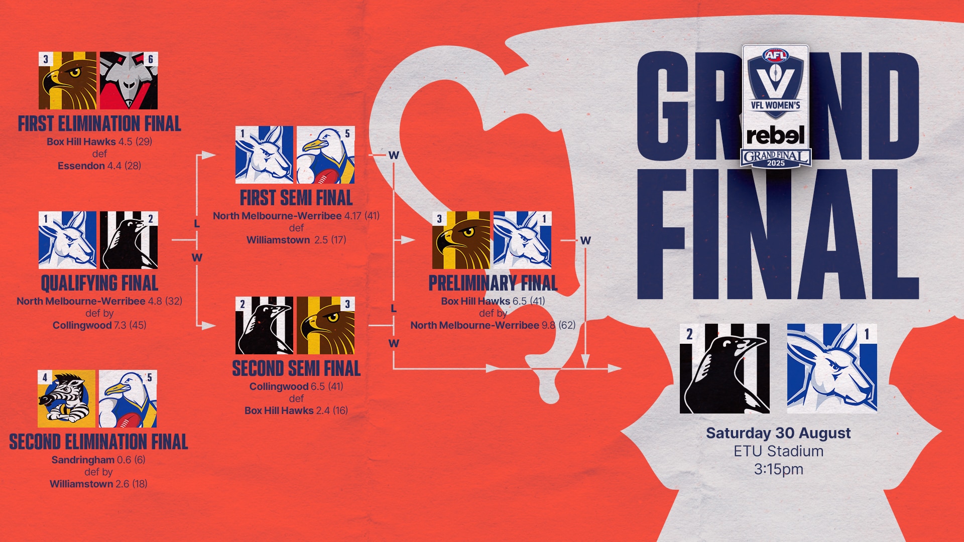 Collingwood and North Melbourne-Werribee will meet in the 2025 rebel VFLW Grand Final.